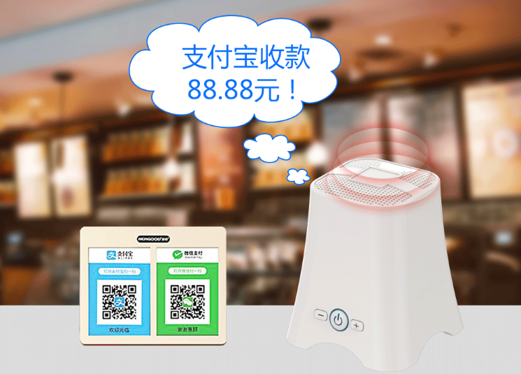 聲音覆蓋范圍廣,即使身處嘈雜的環(huán)境(火車站、高鐵站、菜市場、小吃街)也能聽清收款信息,不怕漏聽錯聽。