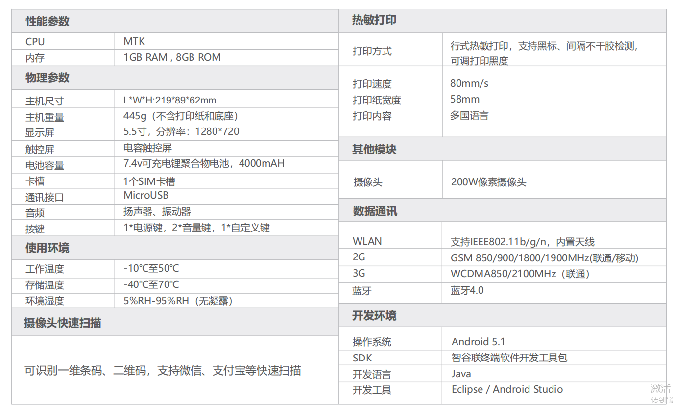 ZKC5501手持機產(chǎn)品性能參數(shù)如下: