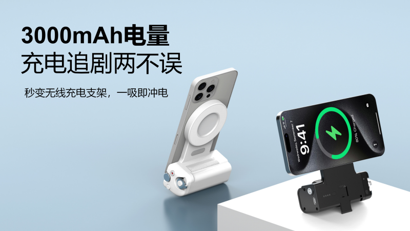 超大電量續(xù)航:內(nèi)置3000mAh電池,不僅能為手柄供電,還能秒變無(wú)線充電支架,為手機(jī)提供7.5W的無(wú)線快充,支持蘋果和安卓設(shè)備,真正做到充電拍攝兩不誤。