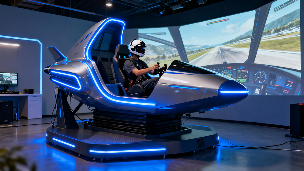 當飛行員在模擬艙中感受顛簸氣流的震顫,當游客在主題樂園“駕駛”戰(zhàn)機穿越峽谷,這一切沉浸體驗的核心,正是六自由度運動平臺與虛擬仿真技術(shù)的深度融合。如圖中所示的虛擬飛行仿真系統(tǒng),通過精準還原飛行姿態(tài)與體感反饋,讓使用者仿佛置身真實機艙。