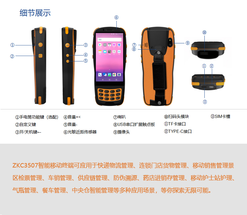 拓展接口:串口,GPIO,指南針(可選), 陀螺儀(可選),聽筒,MIC,I2C(可外加擴(kuò)展芯片),