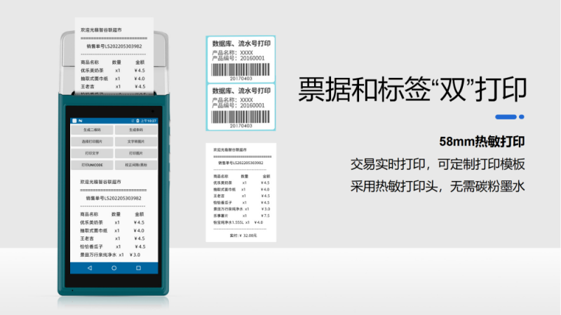 • 產(chǎn)品描述:智谷聯(lián)ZKC5502M手持一體化智能終端融合了收款支付與大屏PDA 的各項功能,超高的集成度和便攜性,可隨時隨地提供集強大計算、安全支付、4G網(wǎng)絡(luò)、高速打印、快速數(shù)據(jù)采集和信息訪問功能于一體的產(chǎn)品應(yīng)用解決方案,廣泛應(yīng)用于奶茶、咖啡、烘焙店、快餐、小吃、餐飲店、便利店、酒店、美容院等實體商戶領(lǐng)域。